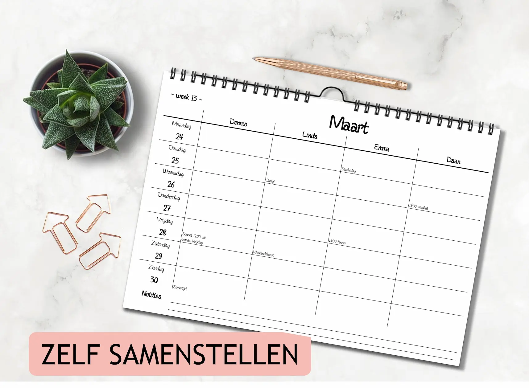 Je eigen gekozen naam op de voorkant maakt je familie weekplanner helemaal af.