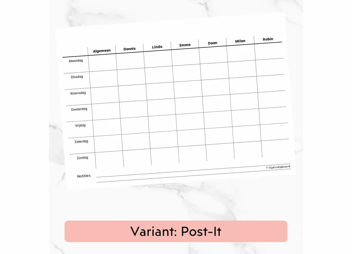 Familieplanner printen – organiseer de week in detail met de printable weekplanner voor je gezin.