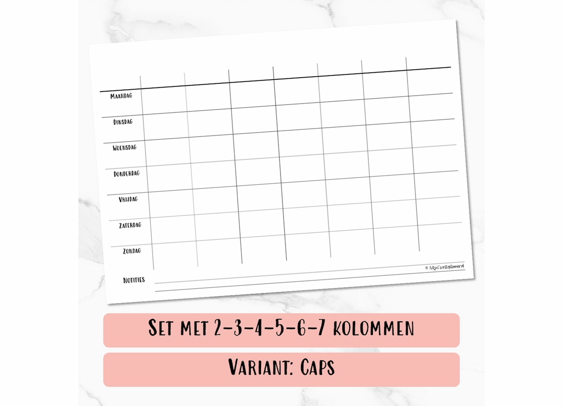 Wil je overzicht in je week? Deze weekplanning pdf is ideaal als weekplanner voor je gezin, maaltijdplanning, roosters, persoonlijke weekplanning of juist als weekplanner voor je kind. Je kiest je indeling, print wat je nodig hebt en plant op jouw manier.